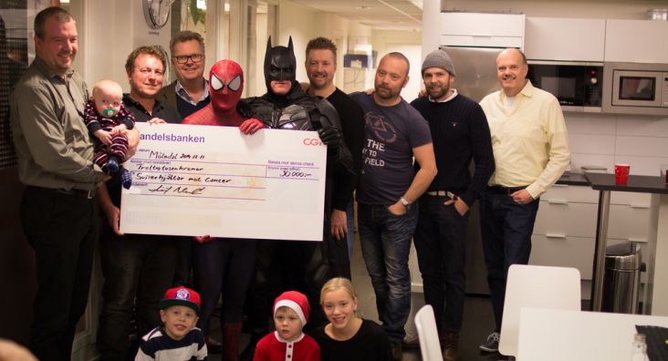 Superhjältarna får en gåva av oss på CGit. Ikväll har vi på CGit överlämnat en check på 30 000:-. Med dessa pengar kommer superhjältar mot cancer kunna fortsätta besöka sjuka och utsatta barn. Vi är grymt tacksamma för denna donation. Stort tack till er, säger Batman och Spindelmannen.