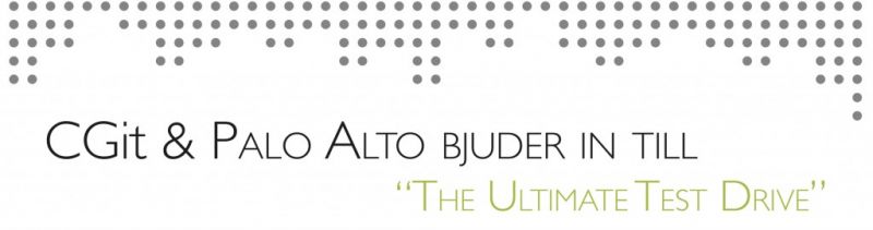 Ultimate Test Drive, UTD, är en kostnadsfri workshop för tekniker, av tekniker, med hands-on labbar på Palo Altos ”Next Generation Firewalls”. Workshopen levereras av systemingenjör från Palo Alto tillsammans med säkerhetskonsult från CGit. Ett utmärkt tillfälle att klämma och känna på produkterna, jämföra med er nuvarande brandvägg och se vad Palo Alto kan tillföra er organisation.